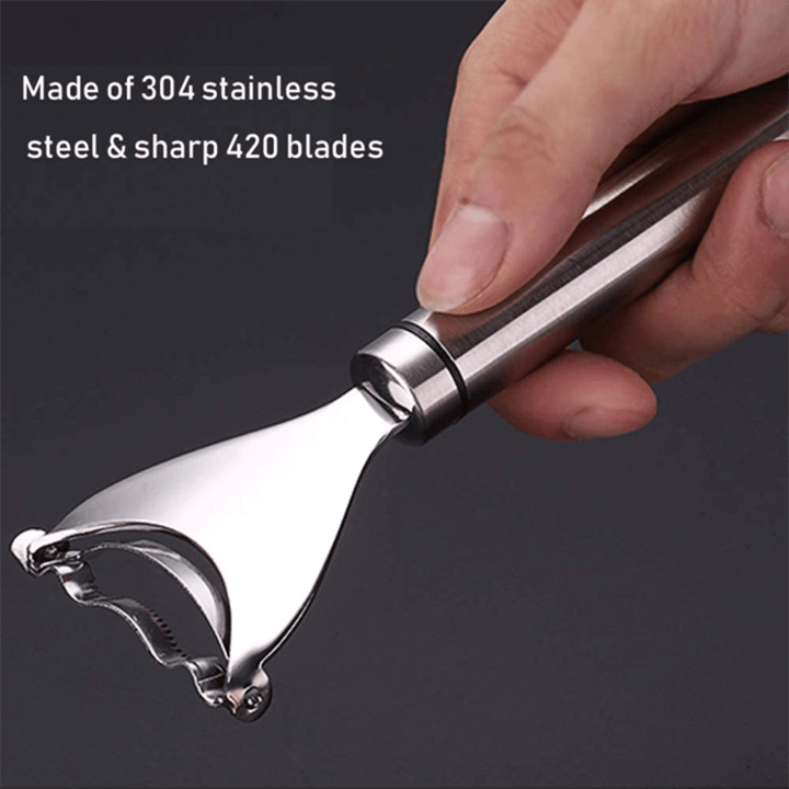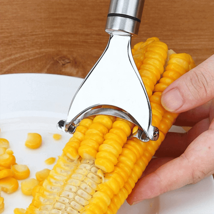 Has a ergonomic high-tech polished stainless steel handle that makes for a nice grip. The serrated blade is super sharp but not dangerous, and there is a hole in the handle for convenient hanging storage. Crafted of solid 304 stainless steel which is heavy duty and lasts a long life without any corrosion, it won't rust, bend, break or weaken at the joints. Cuts the kernels quickly and cleanly, saving your time in the kitchen. Easy to clean, suitable for traditional wash and dishwasher. Weight:70g; Size: 65*185mm.