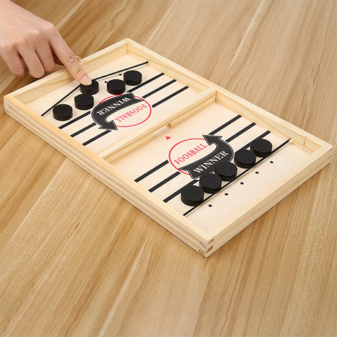 How does it work? Each player takes 5 pucks on his side. To start a round, players count to 3 and Go! Players start shooting the pucks simultaneously. Pass the pucks only through the gate of the board. The first player to pass all the pucks wins the round. Children will forget their screens with this new addictive game. Forget old games and play all day long with your new best friend. Father and sons will have again good times together. And mums and girls too, for sure. With your grandchildren, they will love this game. Gameplay: 1. Each team is divided into 5 pieces; 2.Hold your fingers on the pieces and pull them back with rubber bands; 3. Release your fingers to eject the pieces forward; 4. Aim at the hole and shoot through the hole to the opponent. If you completely occupy the opponent, you can take 3 2 Win system; 5. Proper interaction with parents is an artifact for friends and family to decompress and entertain. 6. A fast and exciting game of chess, always ready for your hand. Game Size: 35*22*2.5cm