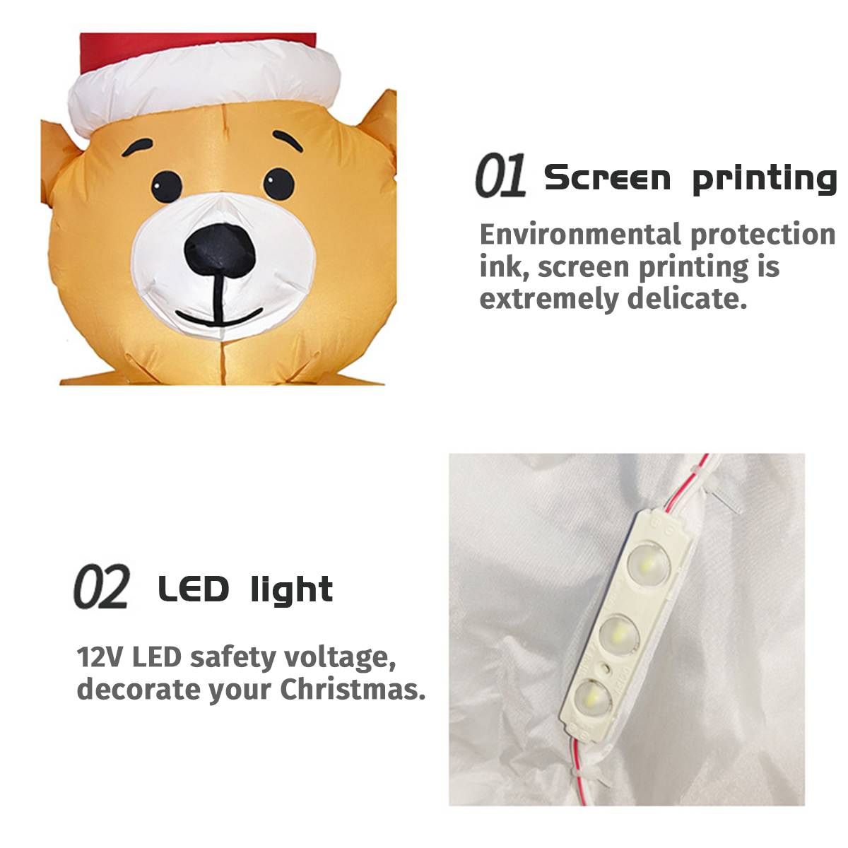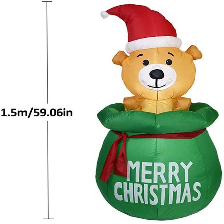 Quick Inflation: Just connect your air blower to the inflatable and turn on the air blower, and the inflatable can be inflated in a few seconds. Premium Quality: The inflatable set is easy to use, which will be a high-end and luxurious suits. Wide Applications: The inflatable is suitable for Christmas indoor/outdoor courtyard garden decoration. And it can be used for Christmas event decorations, Christmas eve events, party Christmas props, classroom decorations and more. Premium Air Blower: The air blower is made of high-strength ABS plastic, which is high-speed, low-noise air blower, and the pressure-transforming tool adopts integrated dipping process, and it features plug and play, which is convenient and fast. Polyester Cloth: The inflatable features the high-quality polyester cloth, thus making it the one can be folded next year, and you can use it again next year. Packing List: Inflatable*1, Pressure-transforming Tool*1, Air Blower*1, Led Light*2, Ground Stake*2, String for Fixing*2.