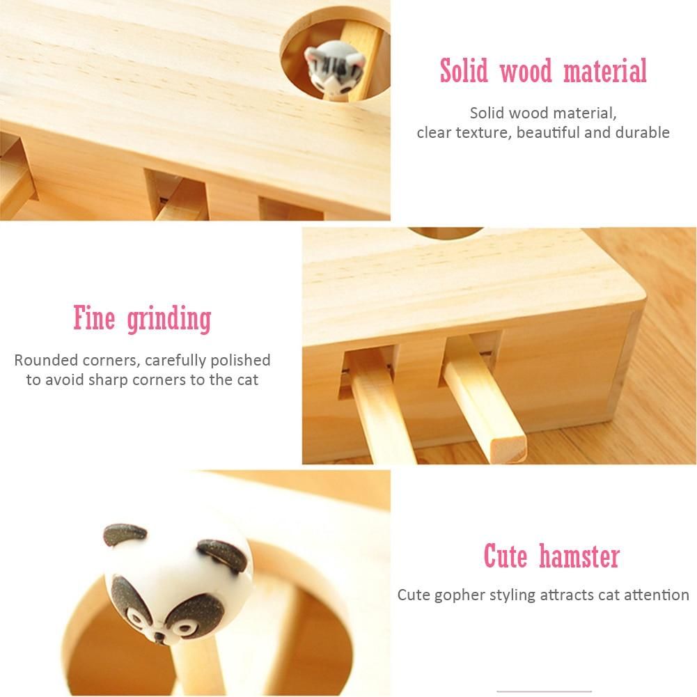If you are looking for the best device to help you raise a well-trained, healthy cat with sharp hunting instincts and excellent mental alertness, then you’ll both love playing with this interactive WOODEN CAT WHACK-A-MOLE TOY! Relax and watch them roll about, or join in the fun and get ever closer to your feline friends. Healthy Superior Material – Our interactive cat teaser toys are made from high quality wood, so it is very durable and useful. All small cartoon toys are non-toxic and safe for your cats, and is also friendly to environment. Material: Solid wood; Hole Size: 10 x 19 x 22 cm/ 3.9 x 7.4 x 8.7 inch;