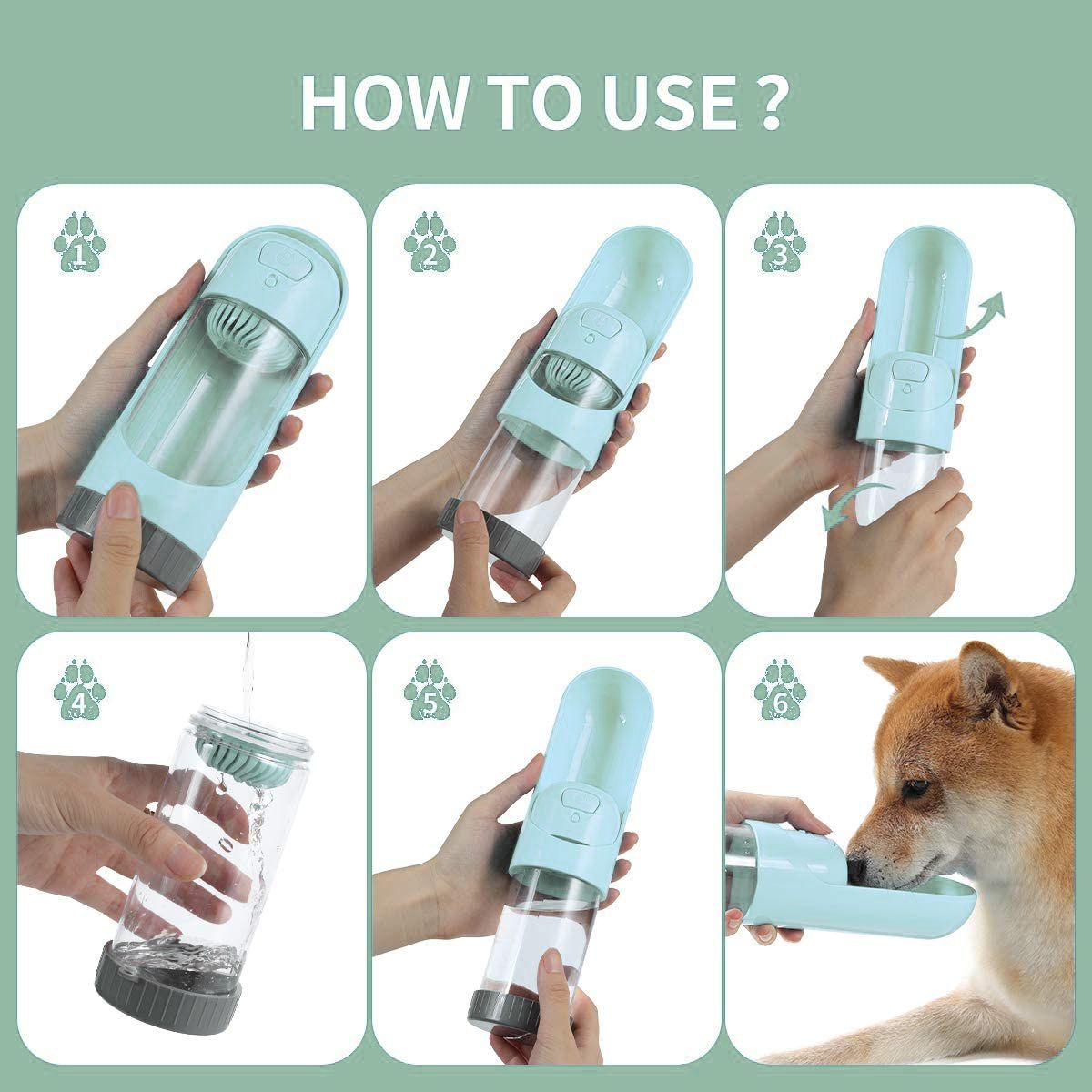 The dog water bottle made with a high-quality food-grade ABS & PC material, BPA-free. Strong and durable, won't break easily even if you accidentally dropped it. Open the bottle, press the button with one hand and the water will flow into the container. One-click to open/lock water is specially designed for a travel water bottle, which helps you water your pet dog outdoor easily and quickly; Drawer-style water trough design not only saves space for carrying about but keeps dust out. The slim contours with a removable drawstring and 300ml capacity, making it more convenient to carry outdoors. You can put it in your bag, hang on your hands, and fit into car cup holders On your journey.