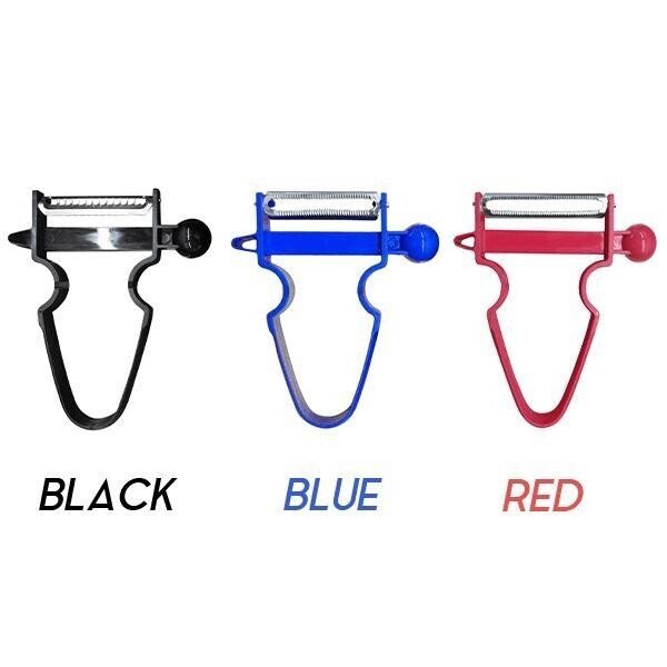 Upgraded Trio Peeler Set can handle ALL the peeling tasks. It can also handle bumps and different shapes fluently without clogging or slipping. Can be widely used for easy peeling, removing vegetable/fruit bumps and creating different funny patterns! Make your cooking time more exciting and share the joy with your family! Black 50mm Peeler: Suitable for potatoes, carrots, apples, pumpkin, pineapples, tomatoes; Blue 68mm Peeler: Suitable for cabbage shredder, cheese slicer, ribbons; Red Julienne Peeler: Zucchini noodles, pumpkin spaghetti. Material: Stainless steel, plastic;